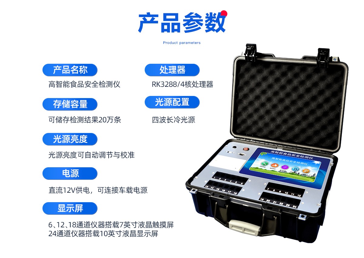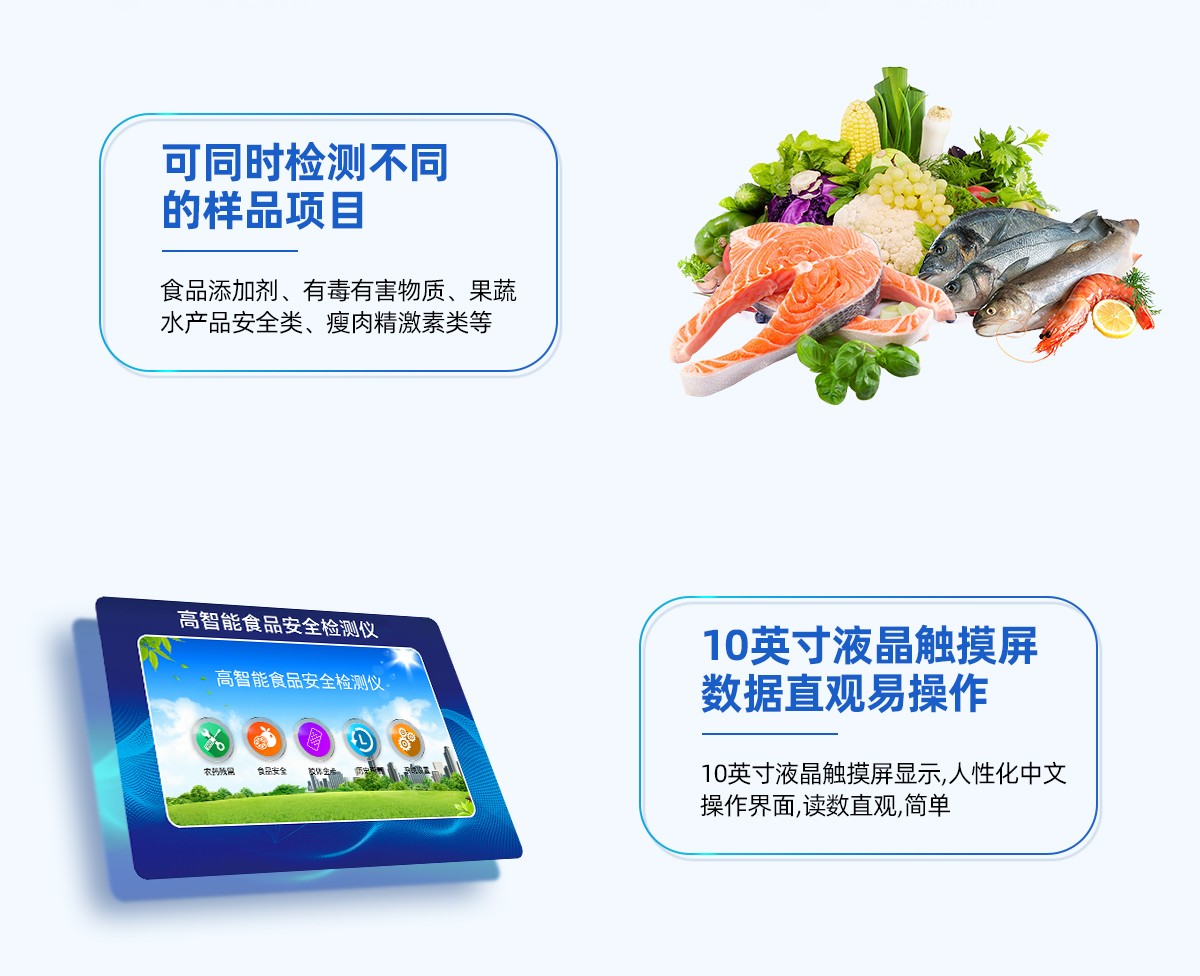 高智能全項(xiàng)目多通道食品安全綜合檢測儀器可快速檢測200多項(xiàng)目,包含非食用化學(xué)物質(zhì)、濫用食品添加劑、農(nóng)藥殘留、獸藥殘留、重金屬、病害肉、營養(yǎng)強(qiáng)化劑、抗生素類殘留、激素類殘留、真菌毒素類殘留、化學(xué)類殘留等現(xiàn)場的定性定量檢測。
