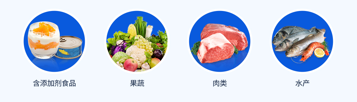 果蔬中:農(nóng)藥殘留,病害肉診斷:組胺、揮發(fā)性鹽基氮、肉制品酸價(jià)、水發(fā)產(chǎn)品中組胺