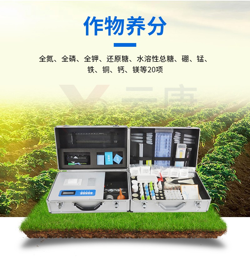 配套齊全:土壤養(yǎng)分速測儀該儀器集藥、器、儀為一體,攜帶方便,相當(dāng)于一個(gè)小型實(shí)驗(yàn)室。適于農(nóng)業(yè)服務(wù)部門或農(nóng)資經(jīng)銷商、肥料廠商測土施肥和鑒別肥料真假。