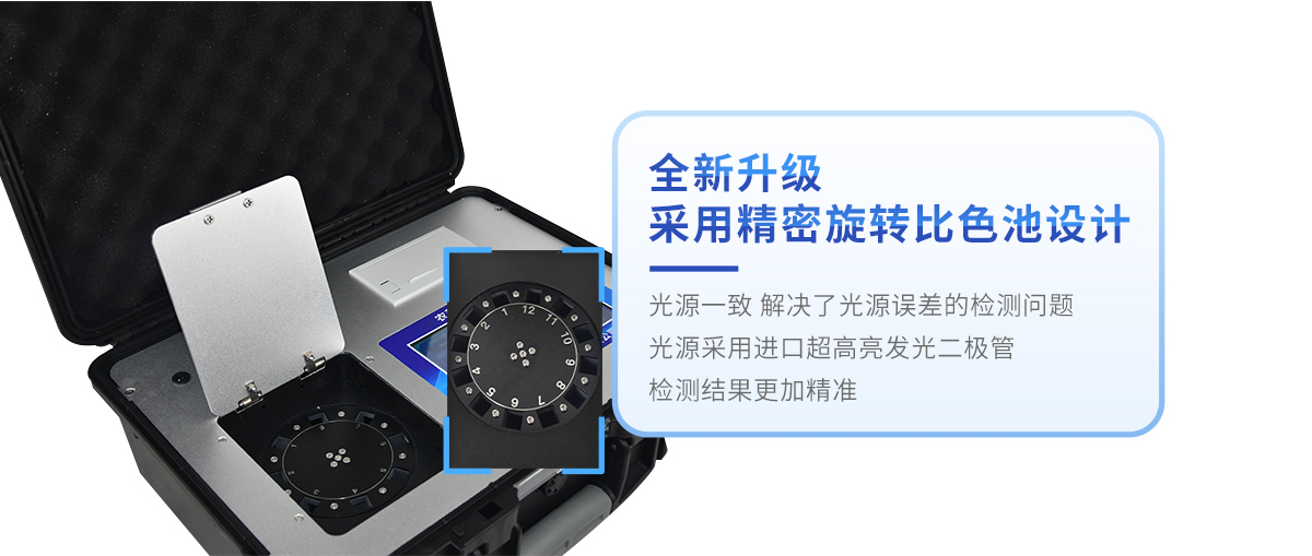 *儀器采用精密旋轉(zhuǎn)比色池設(shè)計,使用光源一致,可以解決各通道間由于光源誤差帶來的檢測結(jié)果誤差問題,檢測結(jié)果更加精準(zhǔn)。